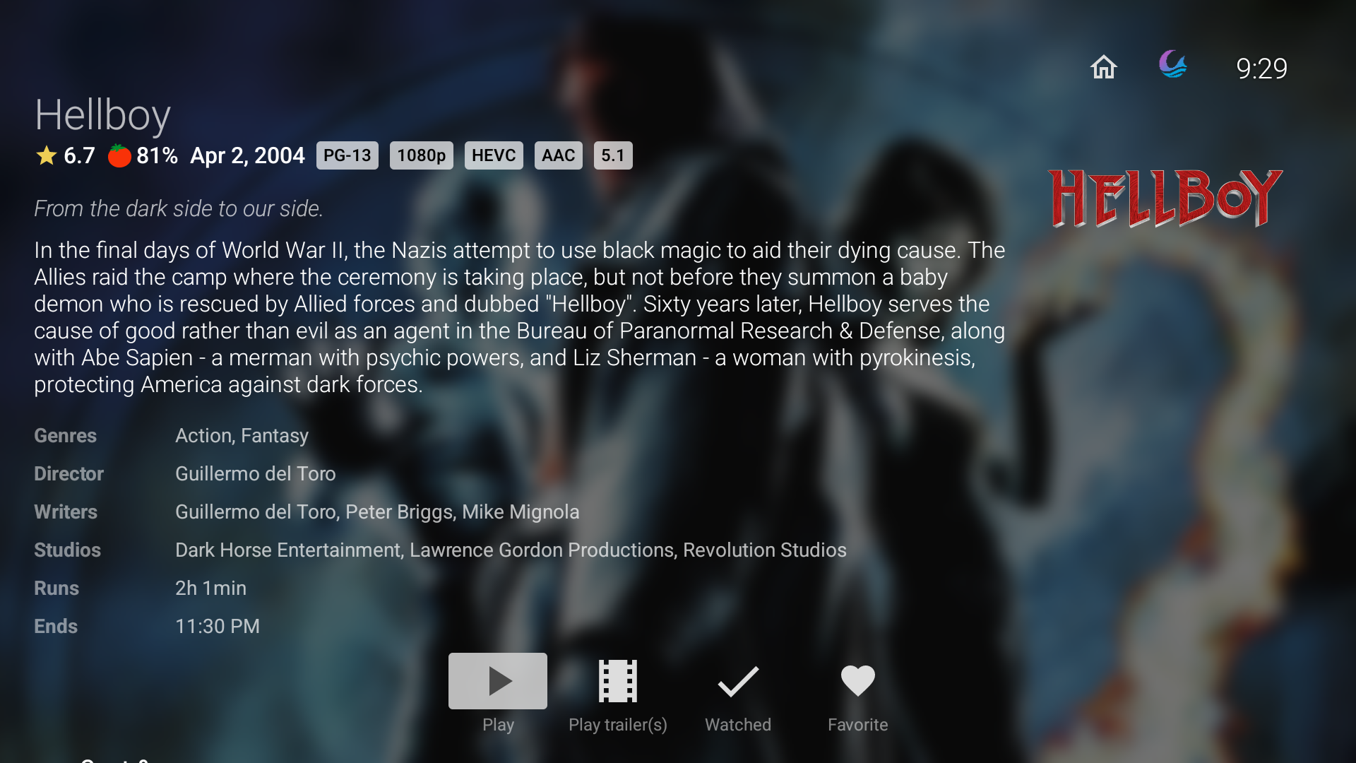 - Clear metadata sections: genres, directors, writers, studios, runtime