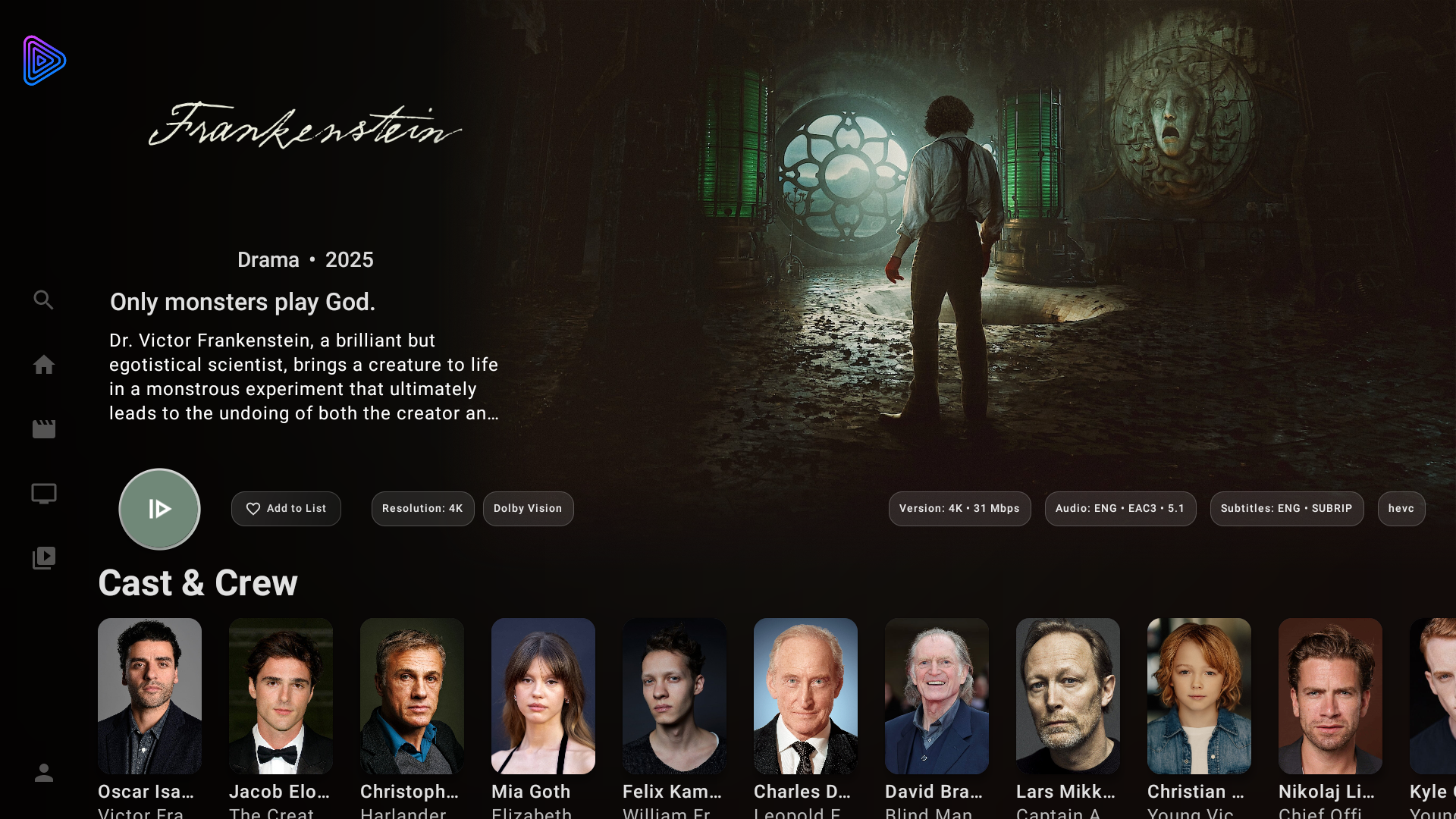 - 📊 Detailed media views - See version, HDR type (Dolby Vision/HDR10/HDR10+), audio/subtitle codecs before playback
